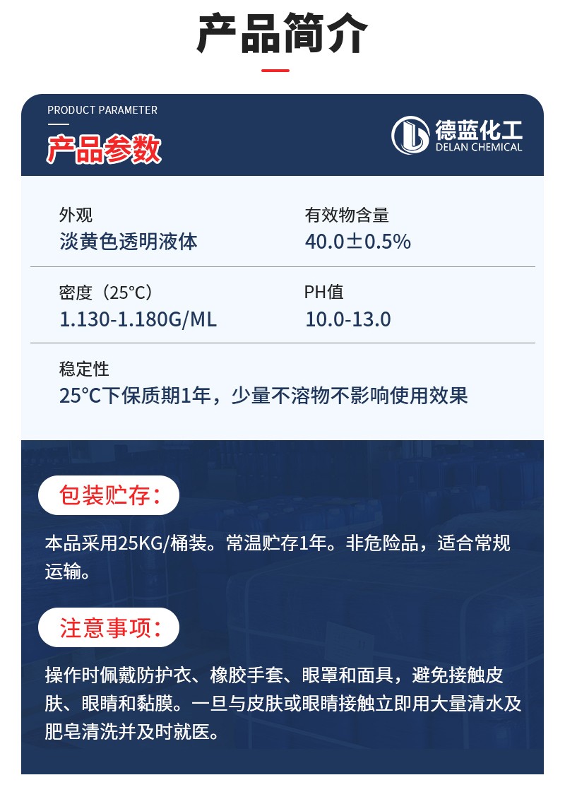 包装储存:25 公斤塑料桶储存于室内阴凉通风处,避免长期阳光暴晒、产品保质期十二个月。