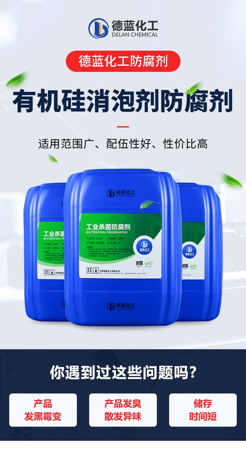 有机硅消泡剂防腐剂DL505是采用先进配方及合成工艺,能有效杀灭各种细菌、真菌、霉菌、酵母菌等,并有持续的抑制作用。消泡剂专用杀菌防腐剂DL505特别适用于有机硅消泡剂的抗菌......