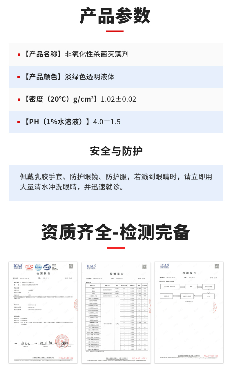 杀菌灭藻剂是一种广谱、高效的杀菌剂。其活性组分为异噻唑啉酮及其衍生物的混合物。对微生物的细胞膜具有强的穿透能力,并对其细胞组织产生分解破坏作用,对常见的细菌、真菌和藻类具有很强的杀灭作用。 ......