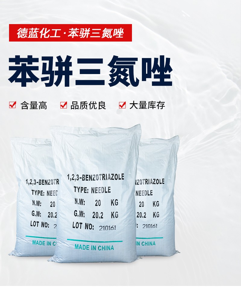 包装储存:苯并三氮唑采用净重20公斤塑编袋或纸板桶,内衬塑料袋,或根据客户要求包装。