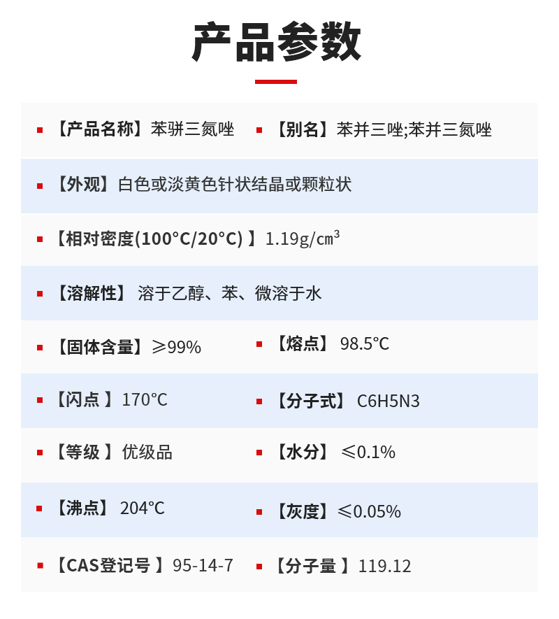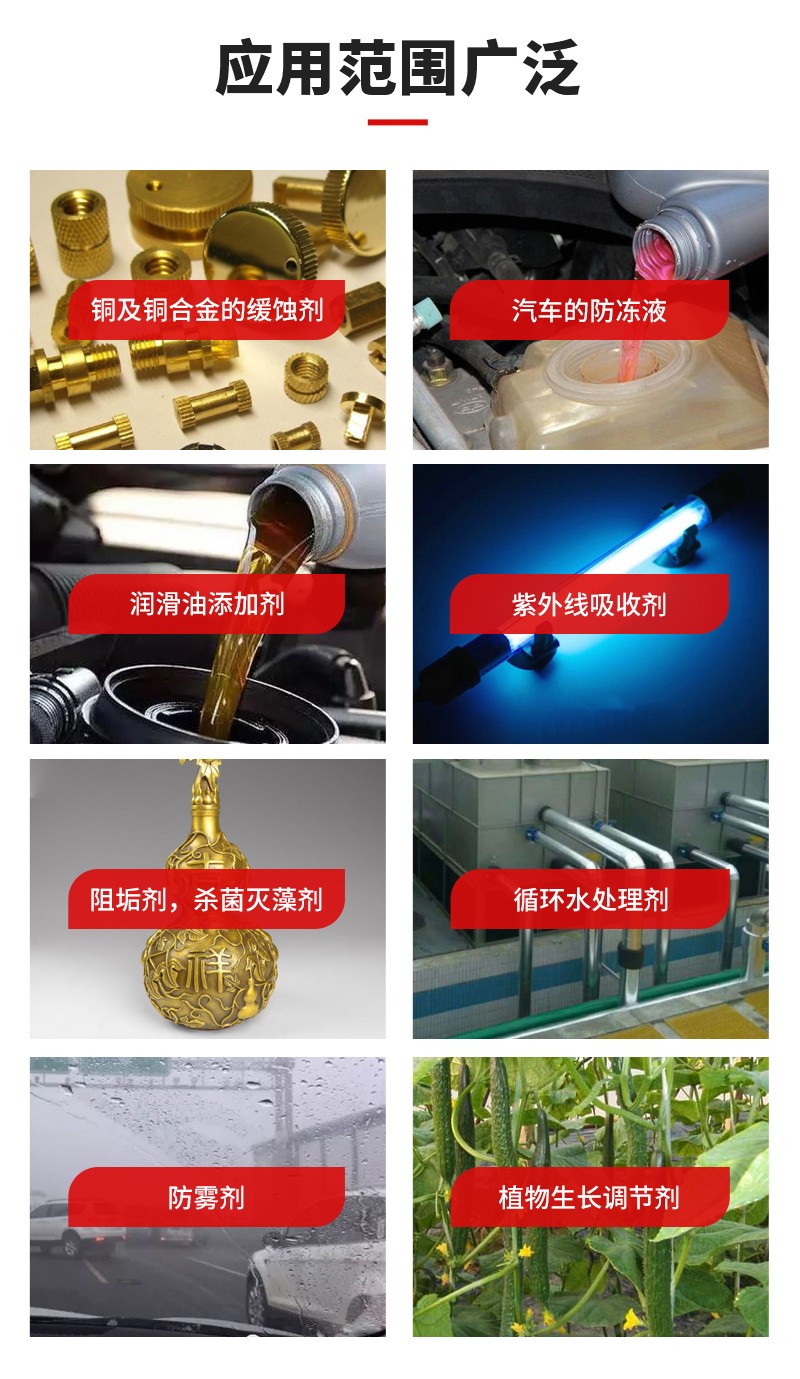 苯并三氮唑纯品系白色至微黄色针状晶体,熔点98.5℃,沸点204℃(15毫米汞柱),微溶于水,溶于醇、苯、甲苯、氯仿等有机溶剂。铜缓蚀剂DL-610苯并三氮唑可以吸附在金属表面形成一层很薄的膜,保护铜 ......